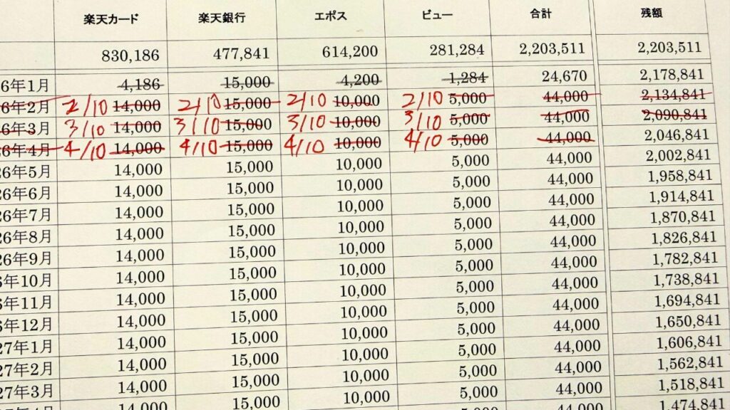 4月分の振り込みを終えて、今の借金残額はこちら。